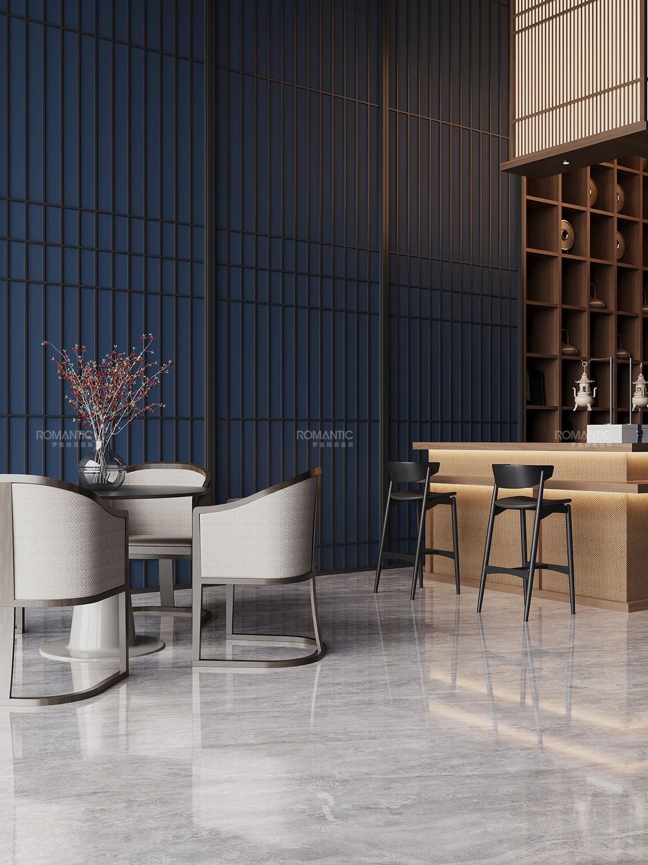 當冰冷的建材被賦予藝術的靈魂,羅曼締克瓷磚-山西長治旗艦店,以前沿的設計、豐富的選材、沉浸的體